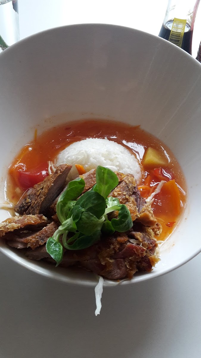 If you’re a fan of hearty soups, don’t miss out on the Pho Chay, a vegetarian noodle soup that’s a celebration of fresh ingredients and umami. It’s perfect for warming your soul on cooler days. For those who have a taste for indulgence, the Knusprige Hühnerfiletstreifen (Crunchy Chicken Stripes) paired with a luscious mango curry is a crowd-pleaser that balances both crunch and creaminess, served alongside fragrant rice and seasonal vegetables.